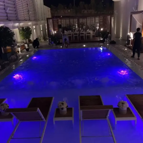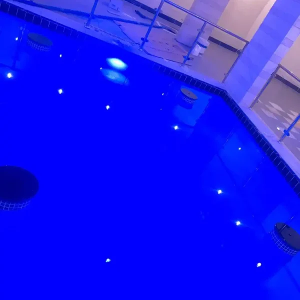 - الإضاءة الذكية (LED): تركيب إضاءات موفرة للطاقة تعمل تحت الماء وتتحكم في ألوانها لتعطي أجواء مميزة ليلية.